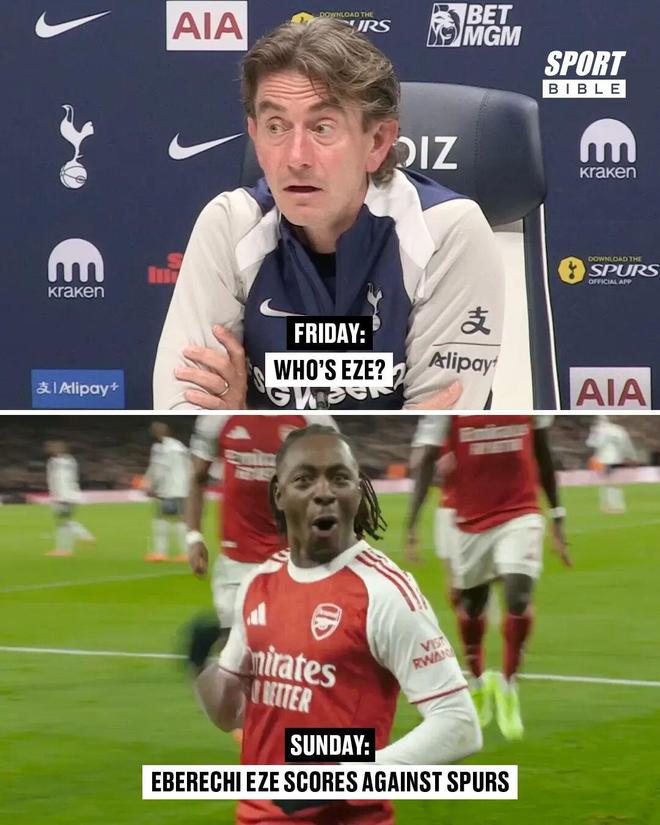 谁是埃泽?枪手新援上演帽子戏法 超神表现打脸热刺主帅